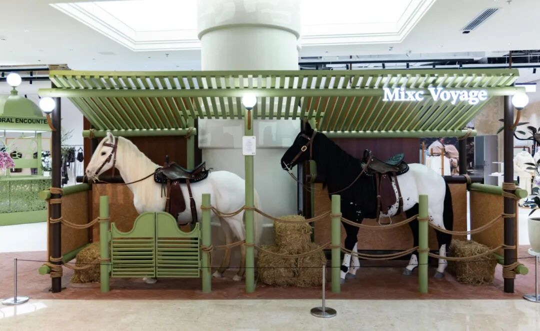 步入武汉万象城,在Mixc Voyage驻游循航可持续空间里,这两匹“马”栩栩如生,寓意着奔腾不息的精神与马年的吉祥开端,为空间注入鲜活的文化气息。