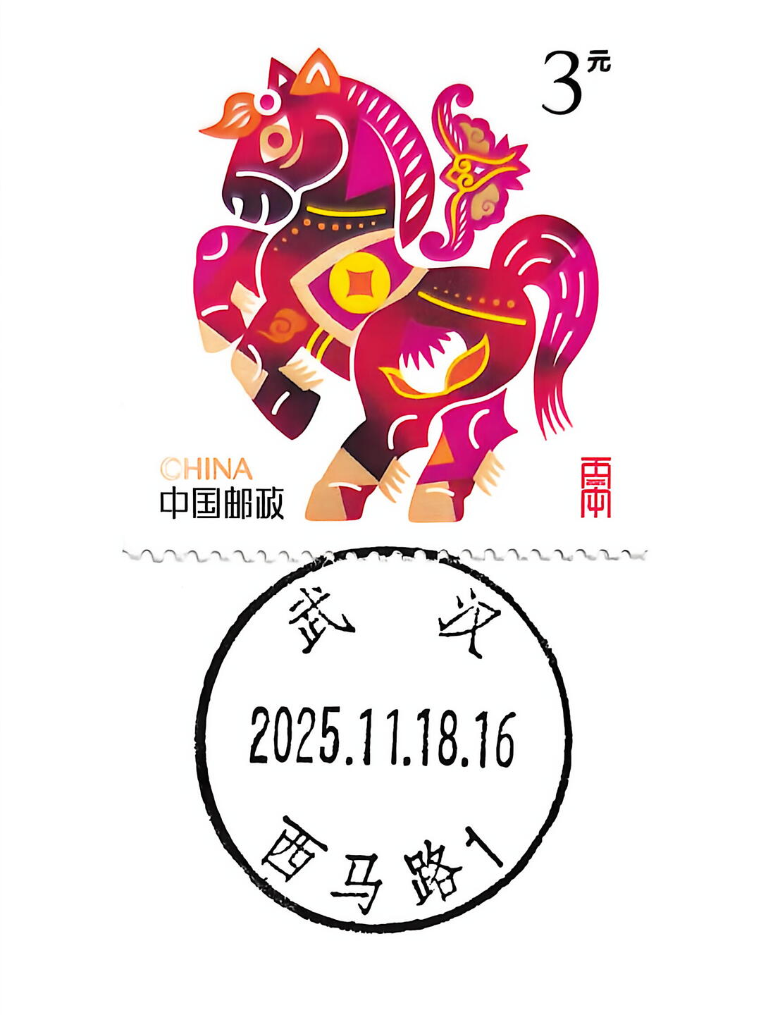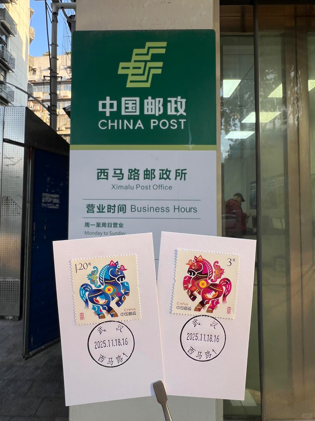 随着《跃马添福》《鸿运驰春》贺年专用邮票发布,有些集邮爱好者购置邮票后,在西马路邮政所门口“合影”拍照。