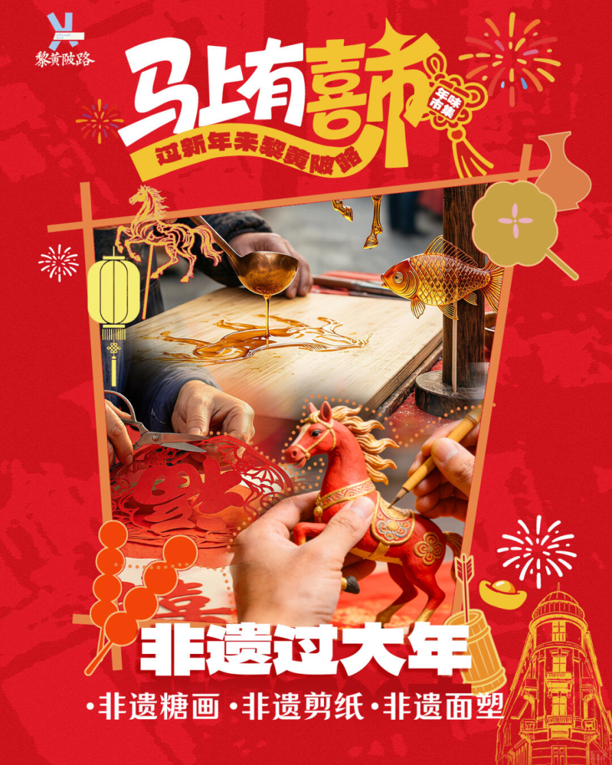春节市集期间,黎黄陂路上张灯结彩,暖意融融的新春布景,100+手作摊位和独特的非遗体验,漫步其间便能沾染满满福气。