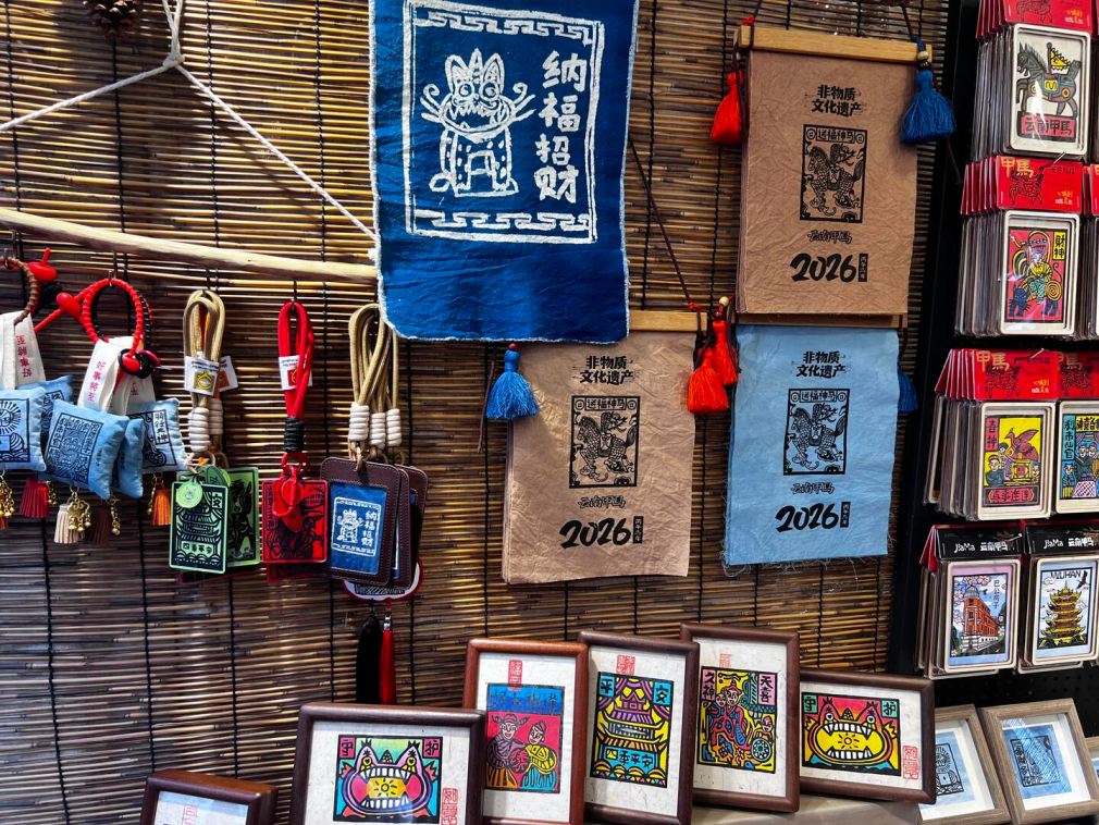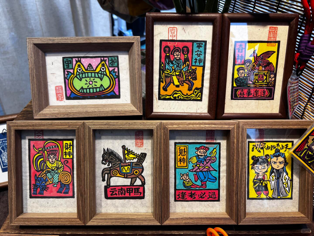 黎黄陂路市集上,还有关于甲马版画店创意与艺术。许多年轻人还将甲马与现代生活结合,根据喜好创造出多种多样甲马图案,走进日常生活。
