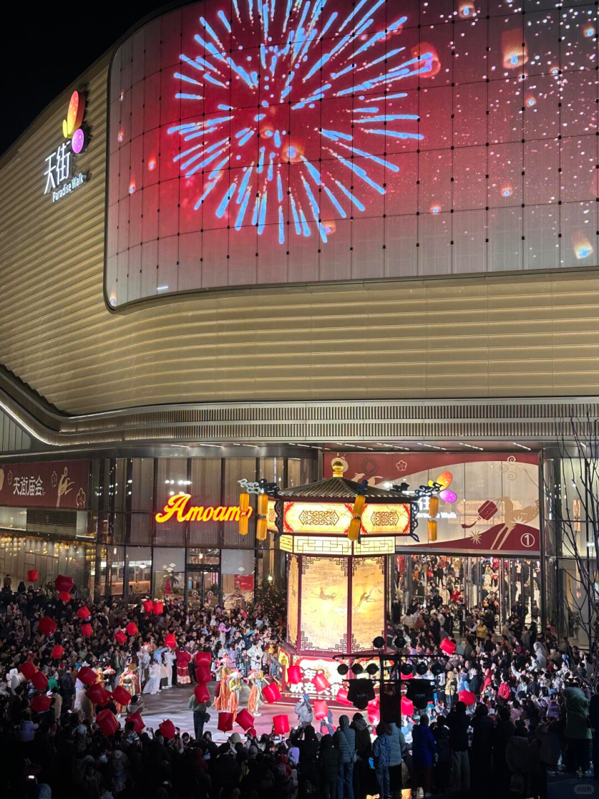 走进新荣天街,巨型的「红韵福马宫灯台」,流转一幅幅生动的“走马”画卷,把江岸的烟火气与诗意揉进光影里。