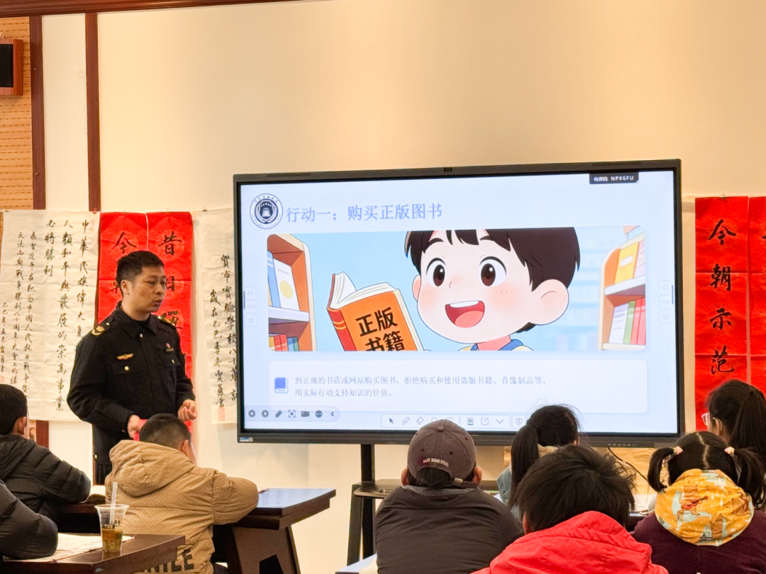 此外,现场还开展了“护苗”普法宣传,由市文化执法支队工作人员用贴近校园生活的案例、通俗易懂的语言,讲解阅读权益、著作权保护知识,教孩子们辨别正版与盗版书籍,引导大家“读好书、读正版书”,在孩子们心中种下尊重知识、保护知识产权的种子,筑牢健康阅读安全防线。