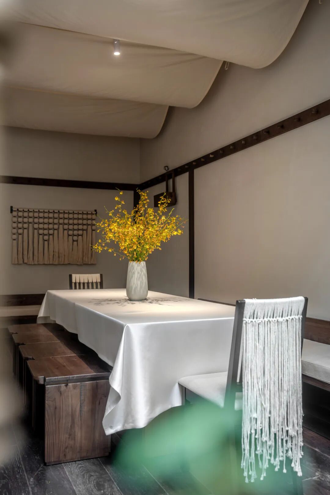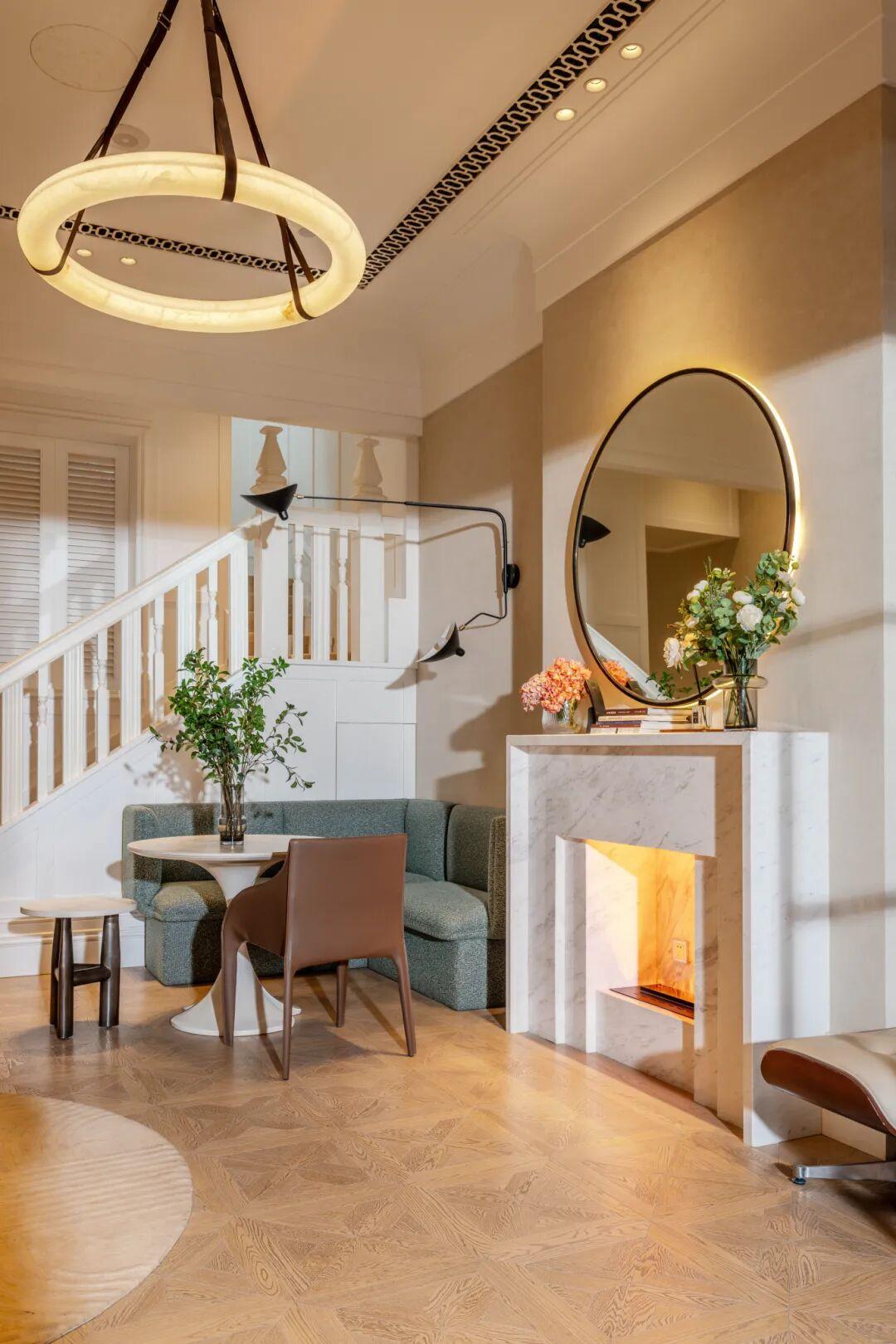 保元里始建于1912年,此次全新亮相的风舍艺术客栈由保元里老房子改造而来。推开厚重的木制大门,三两步踏过一截青石板路,经过小庭院再推开一扇木门,这才走进了客栈内部。雕花窗棂、旋转楼梯,老建筑肌理与细节随处可见,遵循“修旧如故”原则还原了里份建成时的历史风貌。客栈首期推出16间房,分为剧宿房和住宿房。