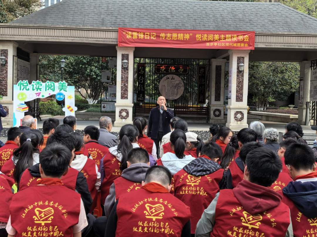 百步亭社区联合汉铁初中、社区民警、志愿者等多方力量,开展“读雷锋日记,传志愿精神”共读活动,通过阅读心得分享、反诈快板表演、燃气用电安全咨询等环节,将安全宣传与志愿服务送到居民身边。