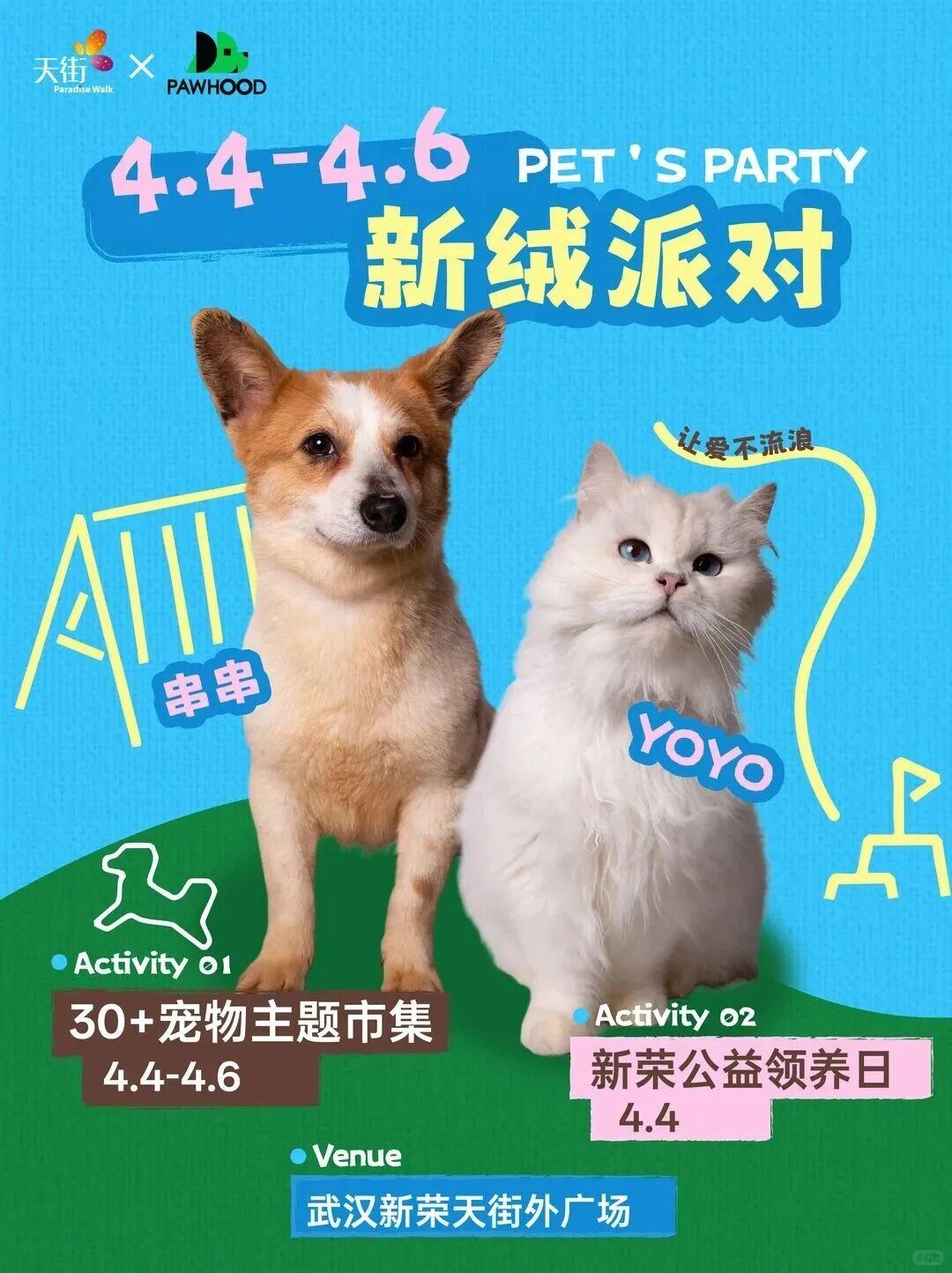 30+宠物主题市集热闹开市中!公益领养日同步进行,倡导“用领养代替购买”。欢迎带上自家毛孩子一站式遛宠、囤货、交朋友,还有机会让宝贝登上现场大屏,记录闪耀时刻。