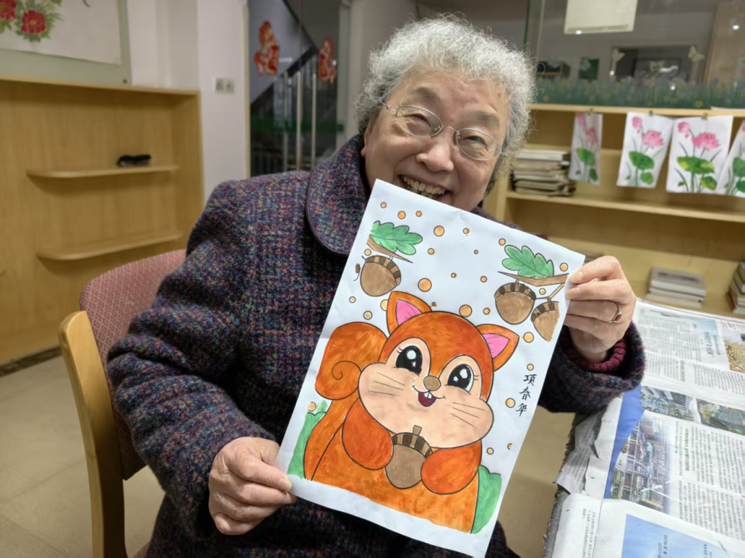 区民政局指导区社会福利院开展老年人绘画小组活动,社工通过打印线稿、陪伴老人涂色创作,丰富老人精神文化生活,提升晚年幸福感。