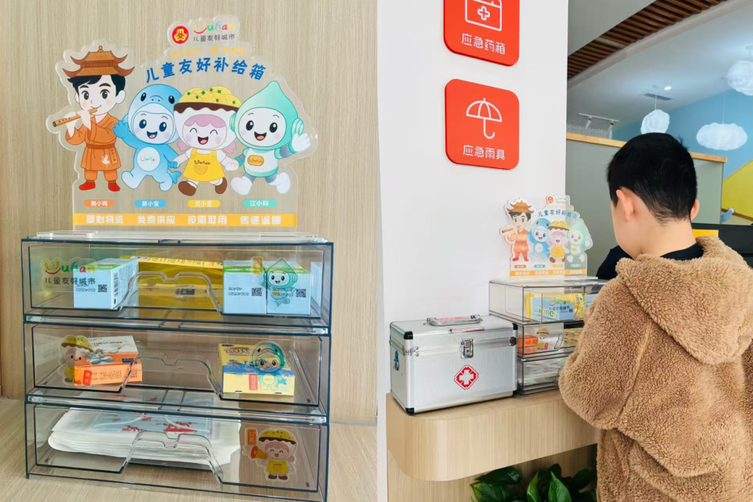 后湖街道海赋社区依托亲民化改造基础,在儿童游乐区旁设置“儿童友好补给箱”,配备驱蚊液、碘伏棉签、儿童创可贴等应急物资,并设有彩绘作品墙,将儿童友好理念融入社区细节。