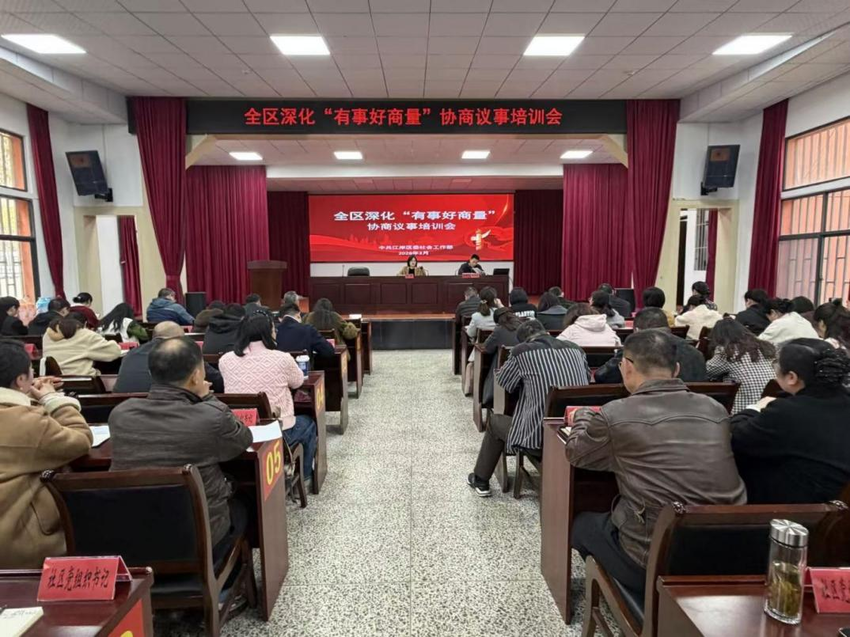 区委社会工作部开展“有事好商量”协商议事培训会,通过讲解协商议事的思路方法和标准流程、“四级联动”组织体系和议题收集转化工作机制,以党建引领提升基层治理水平。